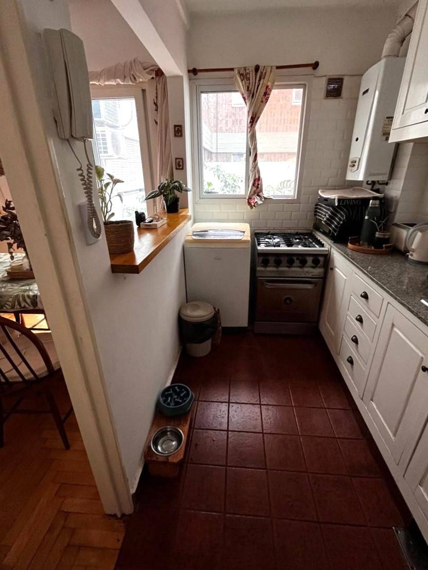 COCINA integrada por barra al living comedor, totalmente reciclada en 2021, agua caliente por calefón. Con conexión para lavarropas.